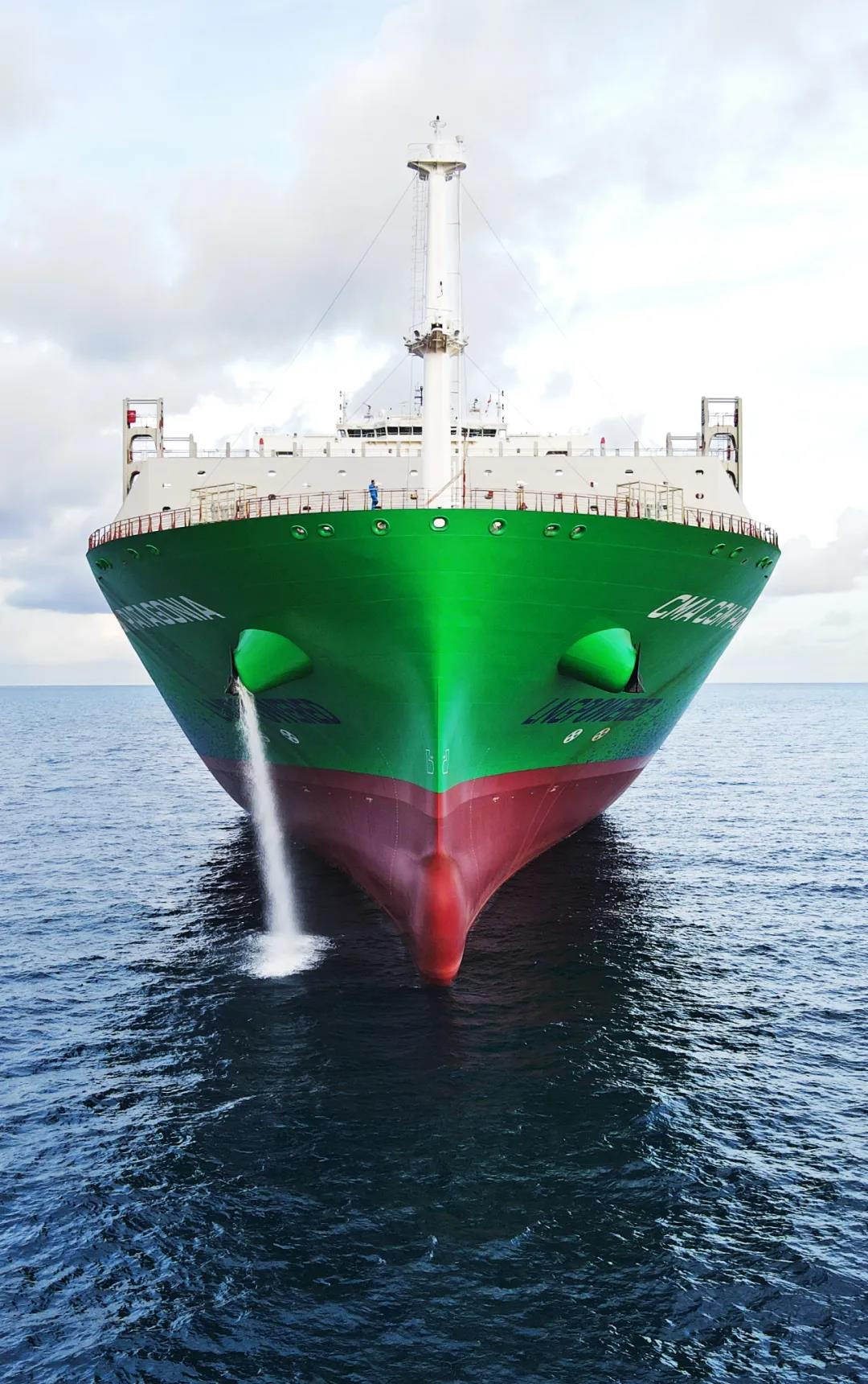 江南造船攜手中船貿(mào)易建造的15000TEU雙燃料超大型集裝箱船以LNG為主要燃料,采用了中國船舶集團自主品牌雙燃料WinGD主機,可支持船舶往返亞歐航線。與傳統(tǒng)燃油集裝箱相比,該型船可減少20%的碳、85%的氮氧化物和99%的硫排放。>>
