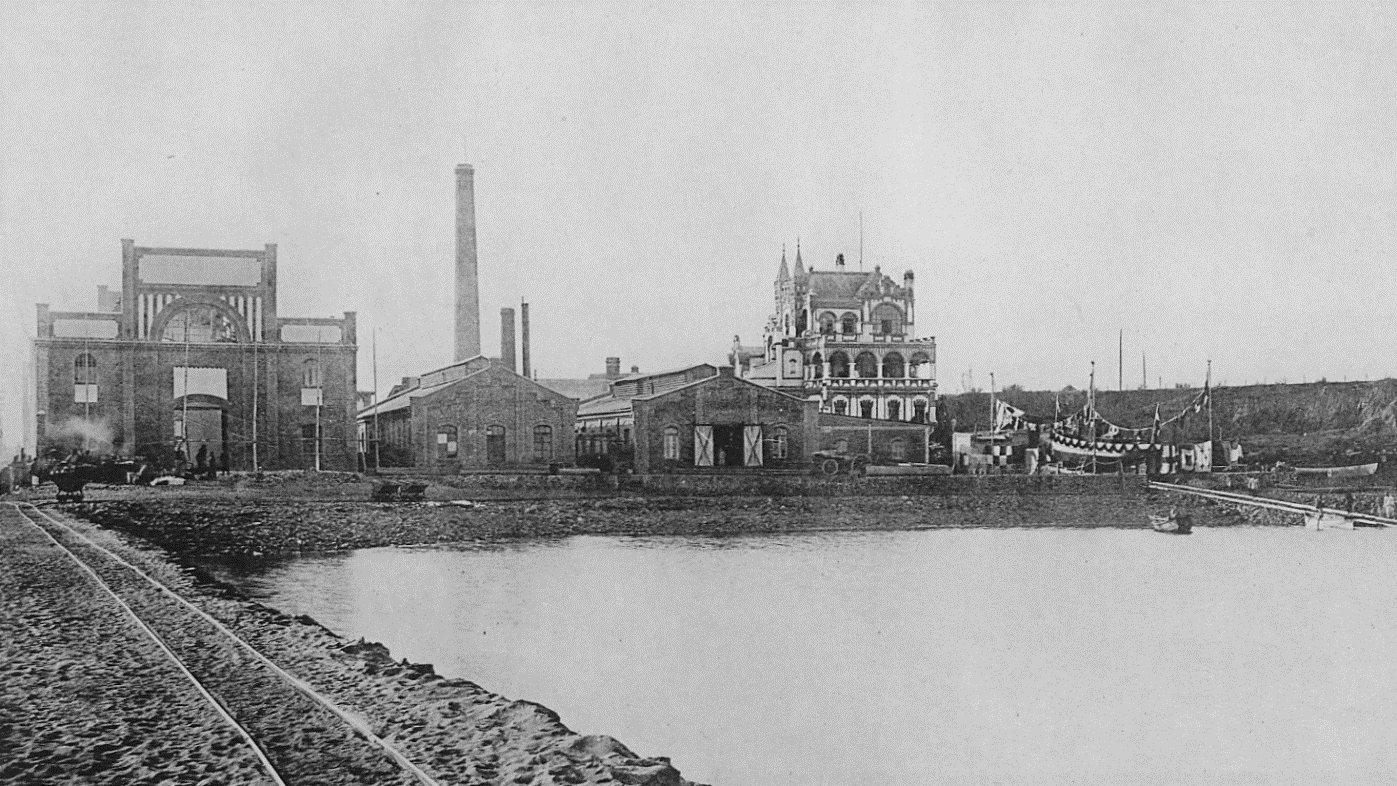 1905年青島,1905年,船廠造出了被譽為“青島之自豪”的1.6萬噸“亞洲第一大浮船塢”和“東亞細亞第一大機器”——150噸起重機。
