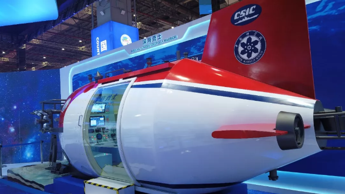 在進博會期間,“深海勇士”號4500米載人作業潛水器模型裝置的一體式設備陳列在中國館,吸引參觀者“深入”潛水器內部一探究竟。