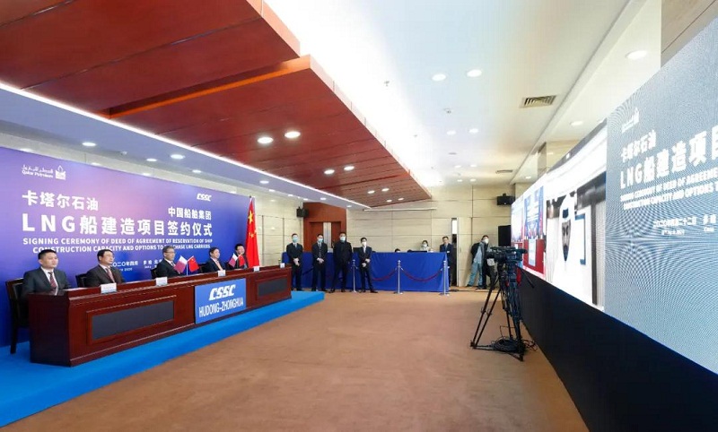 ????2019年4月22日,卡塔爾石油委托其子公司卡塔爾天然氣公司就“百艘LNG船計劃”進(jìn)行招標(biāo)。中國船舶集團(tuán)高度重視、精心準(zhǔn)備、積極溝通,組織旗下滬東中華聯(lián)合中國船舶工業(yè)貿(mào)易有限公司(CSTC)全力推進(jìn)各項競標(biāo)工作。經(jīng)過一年的不懈努力和先后四輪談判,中國船舶集團(tuán)最終在激烈的國際競爭中勝出,為卡塔爾石油建造下一代LNG船,彰顯了中國船舶集團(tuán)在高端海洋裝備領(lǐng)域的強大實力。此次簽約也將為中國船舶集團(tuán)完成全年目標(biāo)任務(wù)奠定堅實基礎(chǔ)。