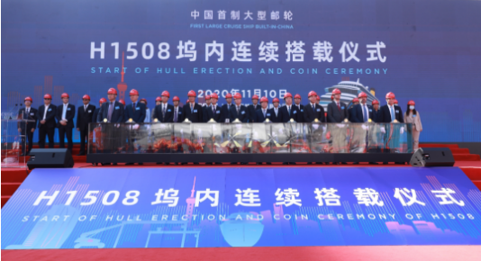 大型郵輪工程是中國船舶集團(tuán)貫徹習(xí)近平總書記重要指示精神、落實(shí)國家戰(zhàn)略、滿足人民美好生活需要的重大舉措,也是中國船舶集團(tuán)強(qiáng)化科技創(chuàng)新、促進(jìn)轉(zhuǎn)型升級、推動高質(zhì)量發(fā)展的一號工程。2018年11月6日,中國船舶集團(tuán)與美國嘉年華集團(tuán)、意大利芬坎蒂尼集團(tuán)在首屆中國國際進(jìn)口博覽會上正式簽訂2+4艘13.5萬總噸Vista級大型郵輪建造合同,并舉行了中國船舶集團(tuán)大型郵輪項(xiàng)目工程正式啟動儀式。這是我國首次簽訂真正意義上的大型郵輪建造合同,開啟了中國船舶工業(yè)建造大型郵輪的新時代。2019年10月18日,中國首制大型郵輪在外高橋造船正式開工點(diǎn)火進(jìn)行鋼板切割,全面進(jìn)入實(shí)質(zhì)性建造階段。一年多來,在中國船舶集團(tuán)的堅強(qiáng)領(lǐng)導(dǎo)下,在中船郵輪科技發(fā)展有限公司、中船第九設(shè)計研究院工程有限公司、上海船舶工藝研究所等兄弟單位的大力支持下,外高橋造船經(jīng)受住了新冠肺炎疫情的洗禮和考驗(yàn),克服了物資采購、薄板車間流水線建設(shè)滯后等一系列困難,一步一個腳印,如期實(shí)現(xiàn)了塢內(nèi)連續(xù)搭載總裝的里程碑節(jié)點(diǎn)。