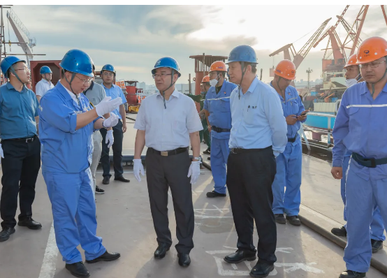 7月21日,工信部黨組成員、總工程師田玉龍到中國船舶集團(tuán)有限公司大連地區(qū)成員單位調(diào)研指導(dǎo)工作。田玉龍一行先后到中國船舶集團(tuán)第七六〇研究所、大連船舶重工集團(tuán)有限公司實(shí)地考察了有關(guān)試驗(yàn)場和在建船舶,聽取了兩家單位整體發(fā)展情況特別是科技創(chuàng)新方面的工作匯報(bào),并對下一步工作提出要求。