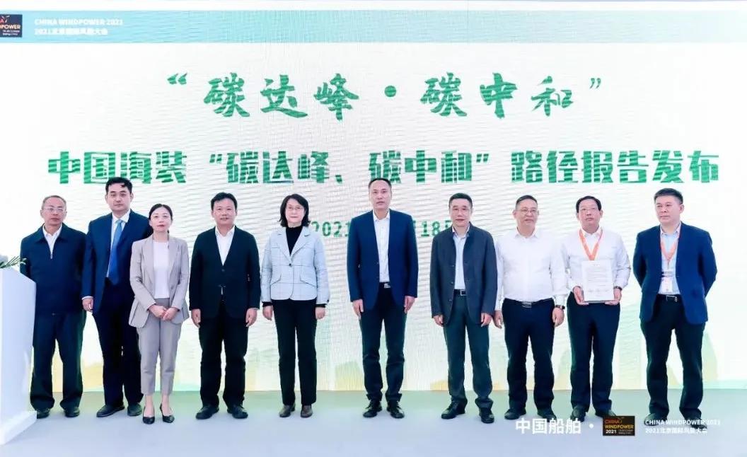 展會首日,中國海裝舉行了“碳達峰、碳中和”路徑報告發布會。作為中國船舶集團風電產業集群的龍頭單位,中國海裝勇當落實“碳達峰、碳中和”目標的排頭兵。為此,中國海裝聯合國家節能中心、工業和信息化部國際經濟技術合作中心、重慶市能源利用監測中心等單位對中國海裝總部及其下屬基地的碳排放情況進行了全面摸底,并基于碳排放現狀,提出了一系列有針對性的減碳零碳措施。未來兩年內,中國海裝將陸續開展減碳零碳行動,預計在2023年底實現碳中和。