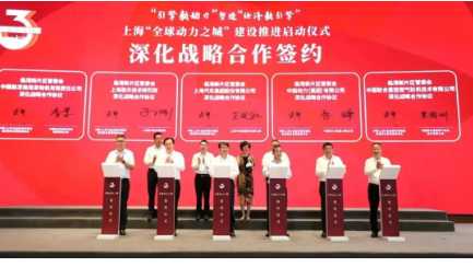 儀式上,臨港新片區管委會與中船動力集團、中國航發商用航空發動機有限責任公司、上海航天技術研究院、上海汽車集團股份有限公司、中國聯合重型燃氣輪機技術有限公司等主要負責人簽署深化戰略合作框架協議。上述企業同時與各相應領域2-3家企業簽署培育合作協議。