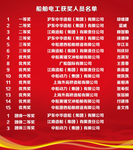 本次競賽項(xiàng)目既有船舶行業(yè)主體工種——船舶電工,又有現(xiàn)代制造業(yè)重要工種——加工中心操作調(diào)整工。競賽由滬東中華、707所承辦,上海公司協(xié)助負(fù)責(zé)保密監(jiān)督工作;競賽首次全部采用第三方裁判,進(jìn)一步提升執(zhí)裁專業(yè)性和公正性。來自40家成員單位共計(jì)120名選手同臺角逐,最終評選出個人及團(tuán)體一、二、三等獎和個人優(yōu)秀獎,優(yōu)秀組織獎等獎項(xiàng)。參賽選手們相互學(xué)習(xí)交流、深入切磋技藝,展現(xiàn)了中國船舶技能人才頑強(qiáng)拼搏、追求卓越的良好精神面貌。
