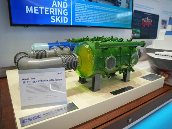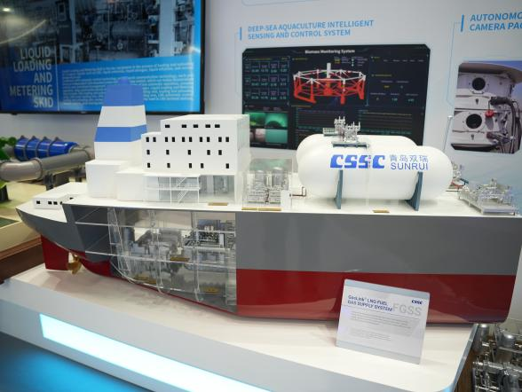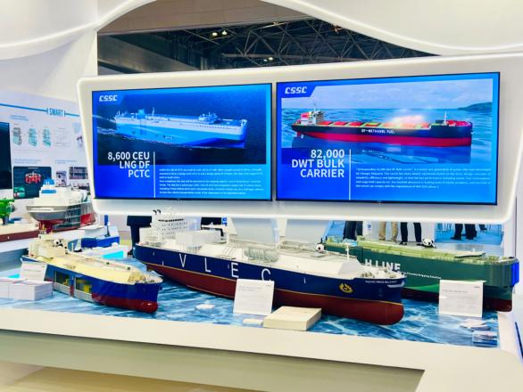 展會期間,國產大型郵輪、17.4萬立方米LNG船、8600車LNG雙燃料PCTC、9.9萬立方米VLEC、WinGD 9X92DF-2.0(-iCER)主機、船用LNG 供氣系統(tǒng)、船用碳捕捉系統(tǒng)、大口徑岸基智能裝卸系統(tǒng)等代表性產品悉數(shù)亮相,獲得海外市場高度關注。
