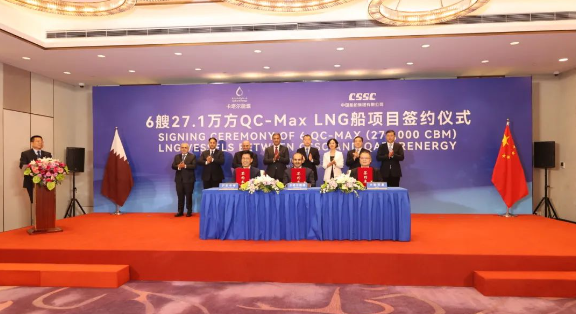 9月9日,三方新簽了6艘全球最大27.1萬(wàn)立方米超大型LNG船訂單。至此,三方已累計(jì)簽訂24艘27.1萬(wàn)立方米超大型LNG船、12艘17.4萬(wàn)立方米大型LNG船,以載氣量計(jì),位居全球各船廠之首。卡塔爾能源事務(wù)國(guó)務(wù)大臣、卡塔爾能源總裁兼首席執(zhí)行官薩阿德·謝里達(dá)·阿爾卡比,上海市副市長(zhǎng)陳杰,中國(guó)船舶集團(tuán)黨組成員、總會(huì)計(jì)師賈海英等出席簽約儀式。