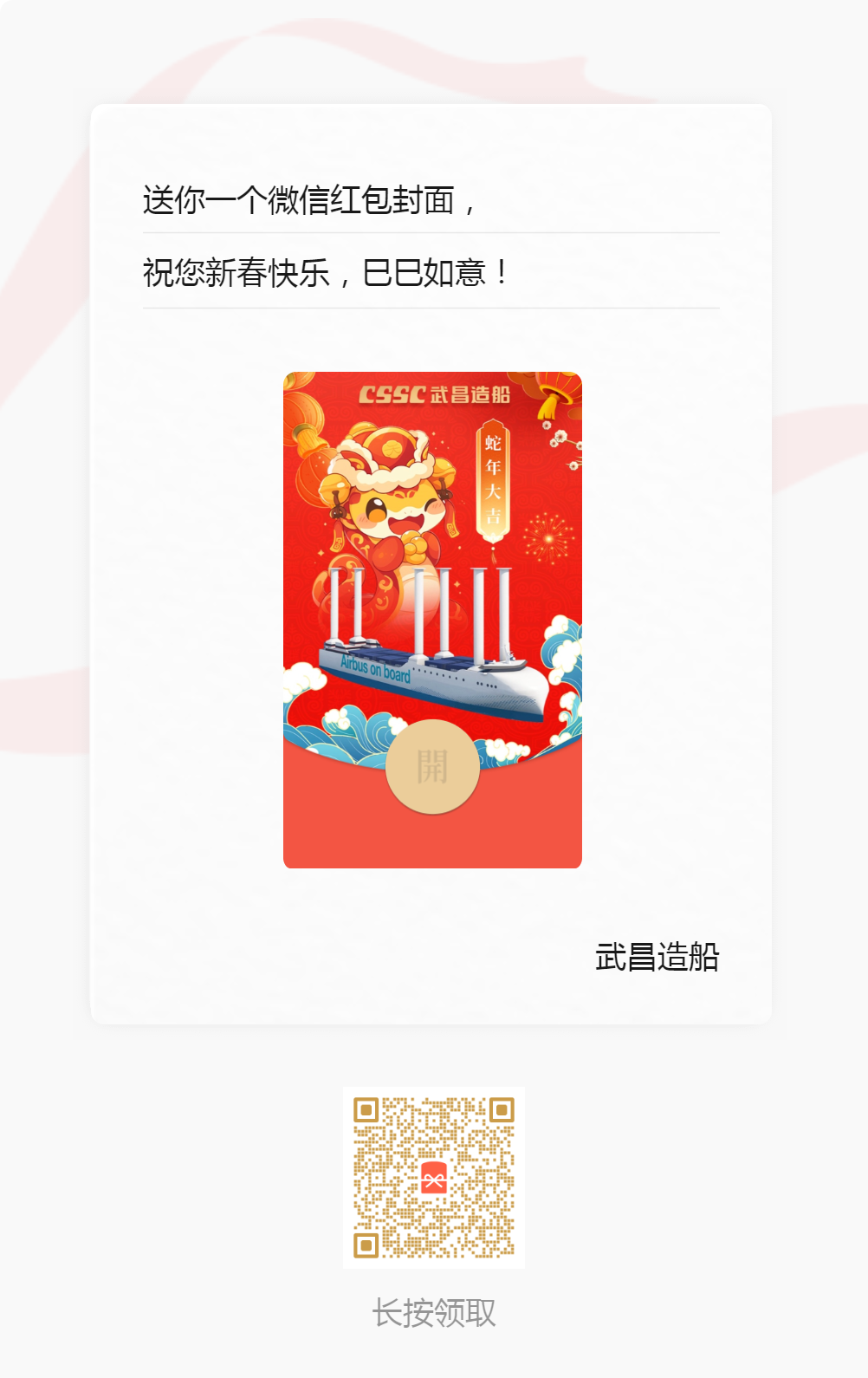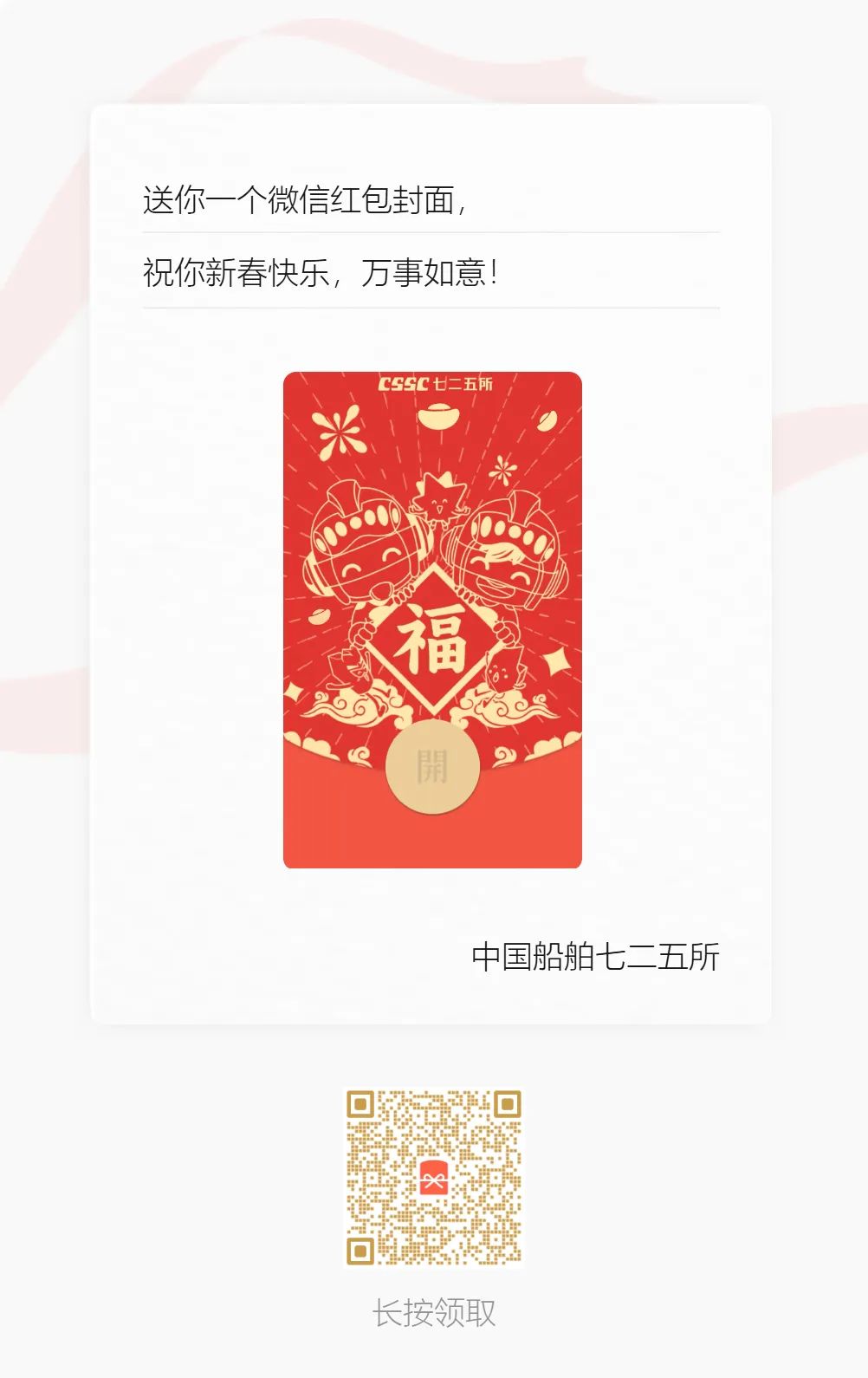 | 紅包封面:武昌造船/黃埔文沖/七〇二所/中船發(fā)動機/中船動力/中船九院/中船郵輪/七二五所