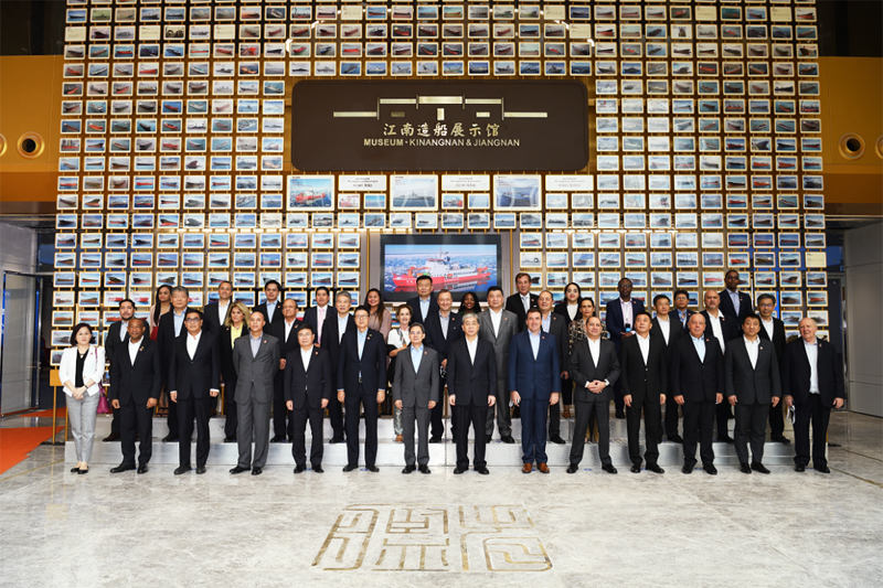 使節(jié)代表團(tuán)先后參觀了中國船舶集團(tuán)旗下滬東中華、江南造船,聽取了兩家企業(yè)重點產(chǎn)品、經(jīng)營生產(chǎn)發(fā)展的總體介紹,并赴船塢、碼頭實地了解了在建的目前全球最大雙燃料23000TEU集裝箱船以及其他高技術(shù)、高附加值船舶建造情況。