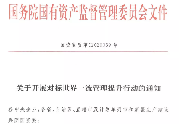 6月13日,國資委正式印發《關于開展對標世界一流管理提升行動的通知》(以下簡稱《通知》),對國有重點企業開展對標提升行動作出部署安排。
