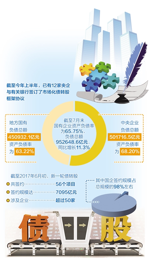 數據顯示,截至2017年6月初,我國新一輪債轉股共簽約56個項目,簽約規模達7095億元,涉及企業超過50家,其中以國企為主,簽約規模占總規模的98%左右。