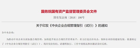中央企業(yè)合規(guī)管理指引(試行)