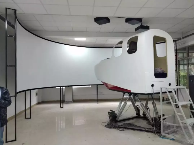 ????該平臺(tái)主要由地效翼船駕駛艙、六自由度運(yùn)動(dòng)平臺(tái)、工控機(jī)、激光高清工程投影機(jī)、180°金屬環(huán)形硬幕、圖像處理器、飛行仿真軟件等組成。駕駛座艙1:1復(fù)制交通運(yùn)輸部指定的唯一教具——翔州1型地效翼船,在環(huán)境上保持了與真實(shí)地效翼船的高度一致,180°金屬環(huán)形硬幕最大程度再現(xiàn)全球各大水域的真實(shí)場景,而六自由度運(yùn)動(dòng)平臺(tái)真實(shí)實(shí)現(xiàn)了地效翼船升沉、俯仰、滾轉(zhuǎn)等動(dòng)作,給學(xué)員身臨其境的地效翼船駕控感受。