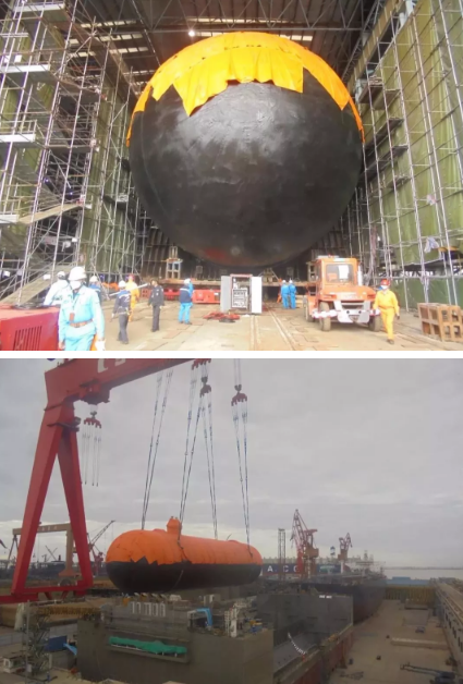 ????最終,江南造船成功完成兩個14000立方米Type C型單體罐駁運吊裝任務。