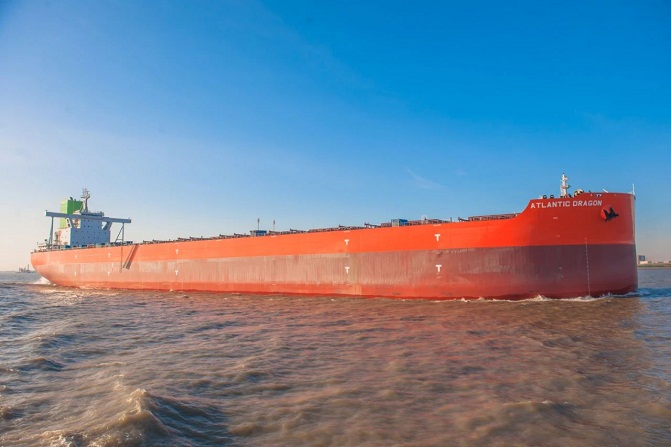 ????同日,中國(guó)船舶集團(tuán)所屬外高橋造船建造的21萬(wàn)噸散貨船“ATLANTIC DRAGON”輪(船號(hào)H1485)和“MARAN FIDELITY”輪(船號(hào)H1453)順利交付。這是外高橋造船自主設(shè)計(jì)的21萬(wàn)噸紐卡斯?fàn)栃蜕⒇洿謩e入級(jí)法國(guó)船級(jí)社和美國(guó)船級(jí)社。紐卡斯?fàn)栃蜕⒇洿峭飧邩蛟齑拿餍钱a(chǎn)品之一。外高橋造船已實(shí)現(xiàn)了產(chǎn)品的持續(xù)升級(jí)換代,船舶技術(shù)性能始終保持全球領(lǐng)先水平。這一代紐卡斯?fàn)栃彤a(chǎn)品的實(shí)測(cè)航速均明顯好于合同保證航速,深得國(guó)內(nèi)外船東客戶(hù)的肯定。