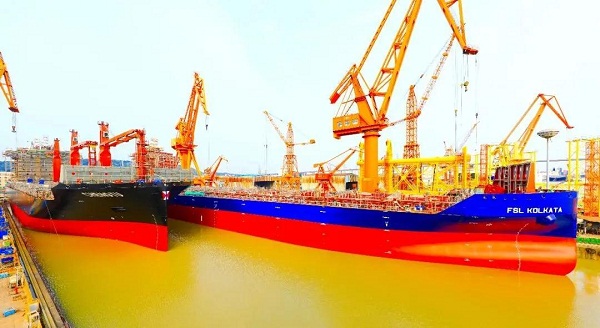 黃埔文沖雙船同日出塢、一平臺主體工程成型
