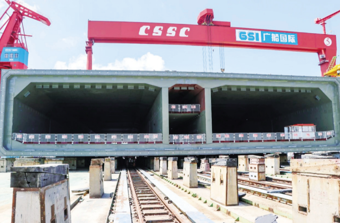 十一所在兩條生產線滿足船舶片體智能焊接的基礎上進行了技術拓展,結合具體建造任務要求為深中通道的建設“添磚加瓦” ,幫助其同時實現了海底隧道鋼殼片體的智能生產,實現了產品從船舶建造領域至鋼構制造領域的拓展。