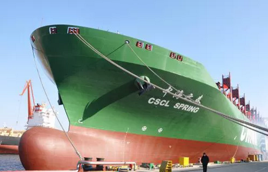 2014年1月8日,我國完全自主研發、自行設計、自行建造的第一艘10000TEU超大型集裝箱船“中海之春”號在大船集團交付?!爸泻V骸碧柕慕桓?,不僅實現了國內建造超大型集裝箱船又一次新的飛躍,而且使我國成為繼韓國、日本之后,能夠自主研發、自主設計、自主建造同型超大型集裝箱船的國家。