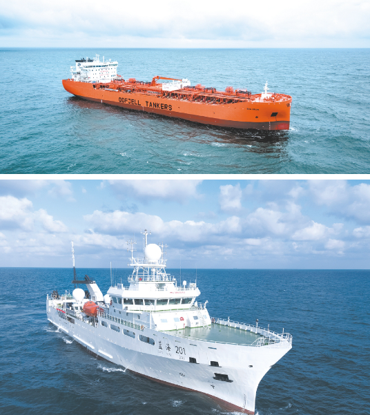 ——2020年9月,自主建造交付世界上首艘以LNG 為主要動力的噸位最大、集成世界最先進技術、環保性能最優的23000TEU雙燃料動力集裝箱船“達飛雅克·薩德”號,并實現批量交付,進一步鞏固了滬東中華在超大型集裝箱船建造領域的行業領軍地位。這艘被譽為海上“綠巨人”的雙燃料動力集裝箱船,備受業界廣泛關注,她的成功建成交付是我國船舶工業高質量發展取得的重要成果,彰顯了滬東中華雄厚的建造實力,也標志著中國船舶集團在世界大型集裝箱船領域成功實現從跟隨到引領。