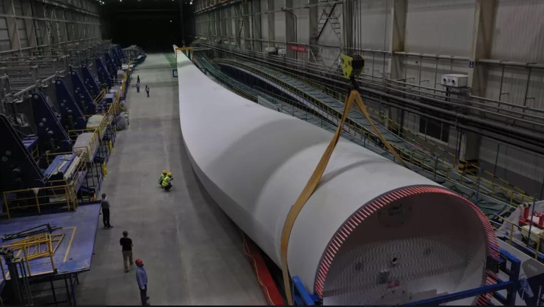 該葉片為雙瑞風電10MW-SR210型海上風電葉片,長度102米,風輪直徑210米,由SR210葉片組建的單臺風機,全年的發電可滿足5萬個中國家庭一年的用電量,每年能夠減少5萬噸二氧化碳的排放。發貨安裝后,舞動海上的龐大葉片將如蛟龍出海,助力我國海上風電建設,為實現“雙碳”目標添磚加瓦!