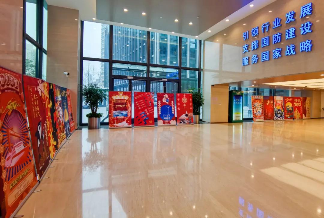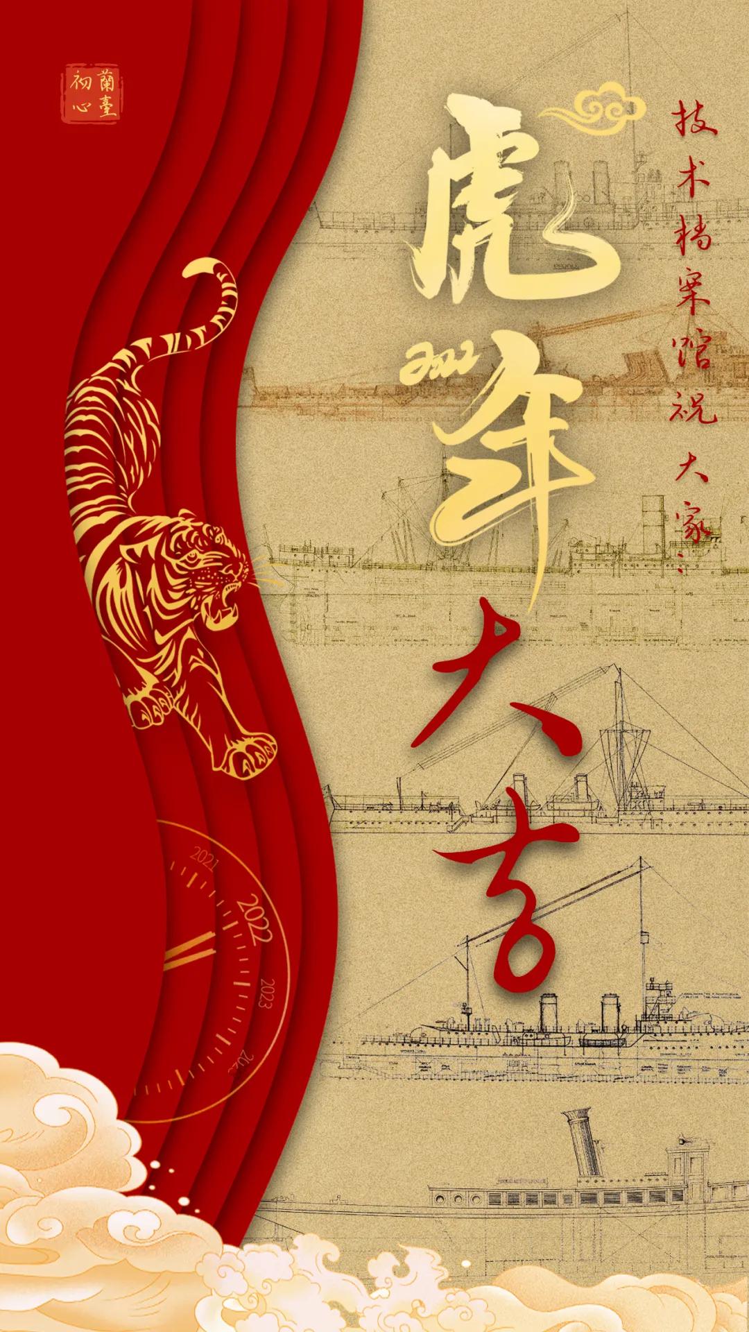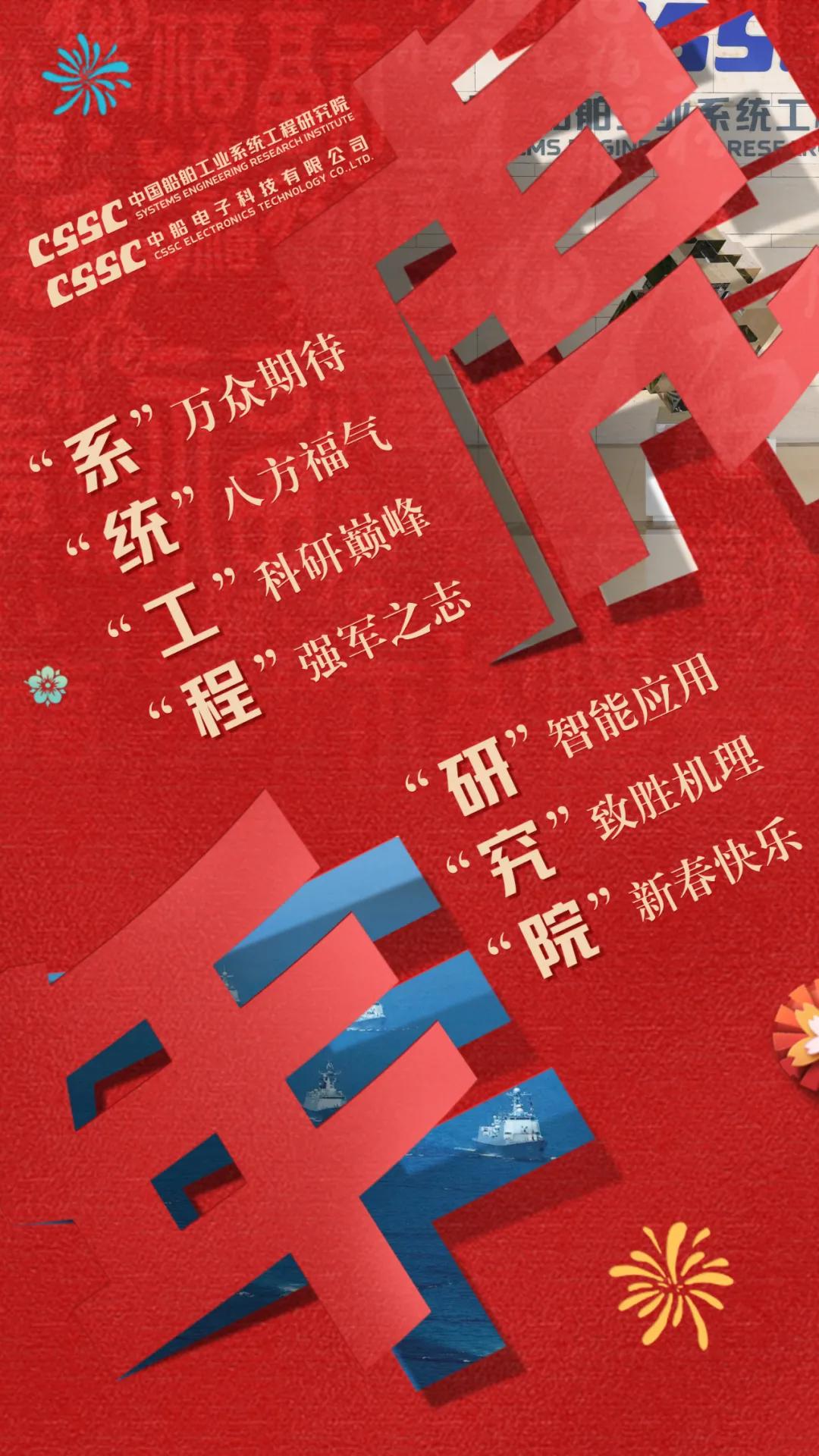 以中國紅為主色調,運用傳統剪紙手法結合鏤空設計,寓意揭開虎年新篇章,映入眼簾的艦艇乘風破浪、浩浩蕩蕩,傳遞系統工程研究院/中船電科建設強大海軍的信心和決心!