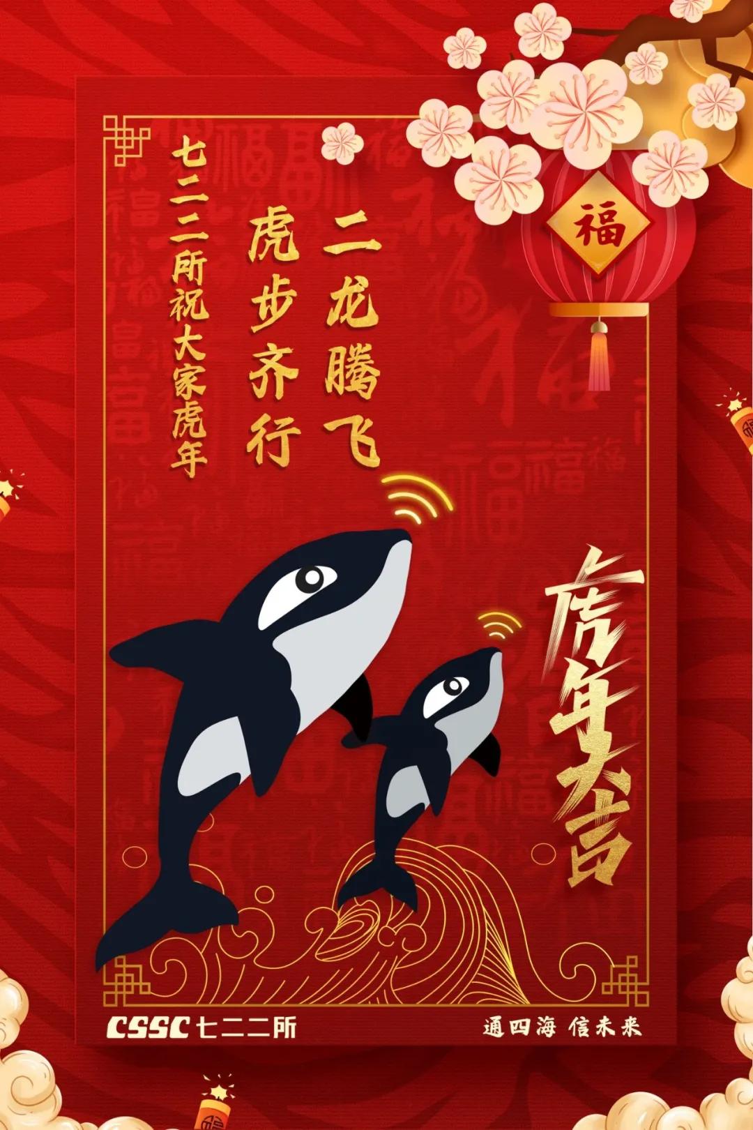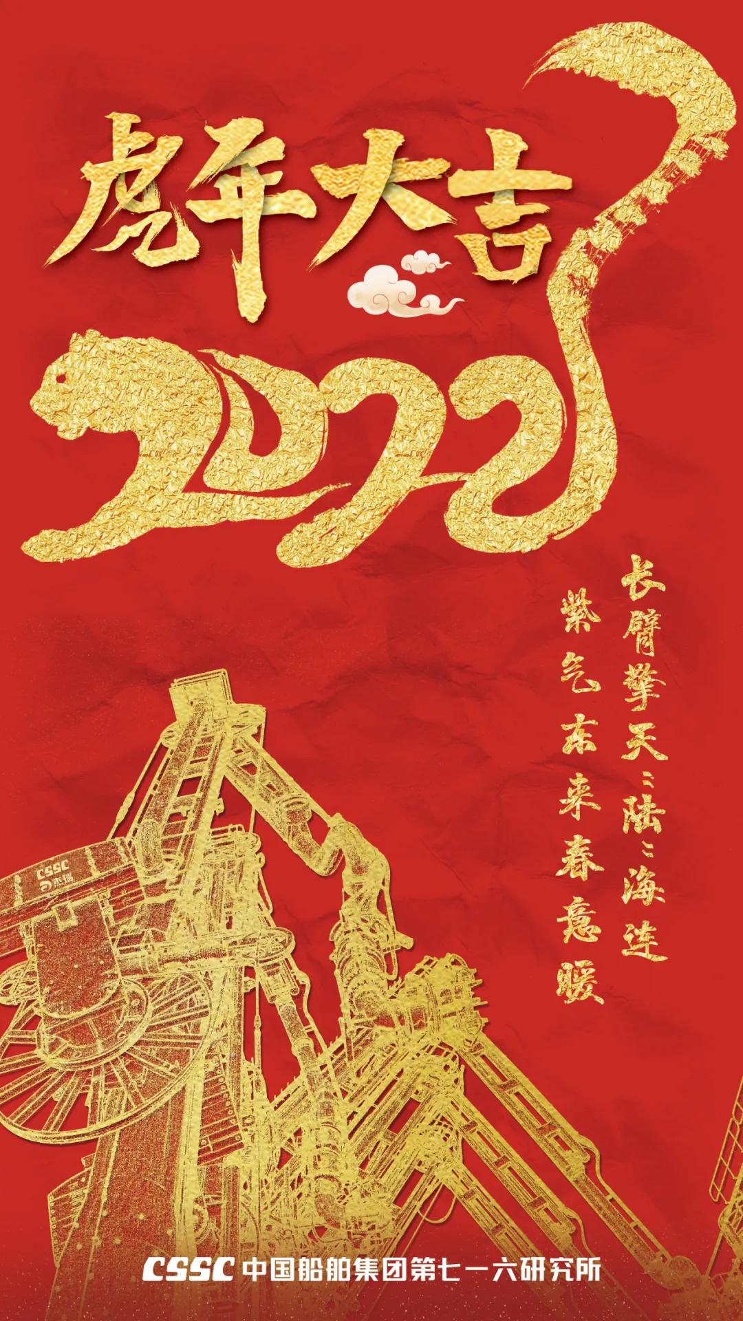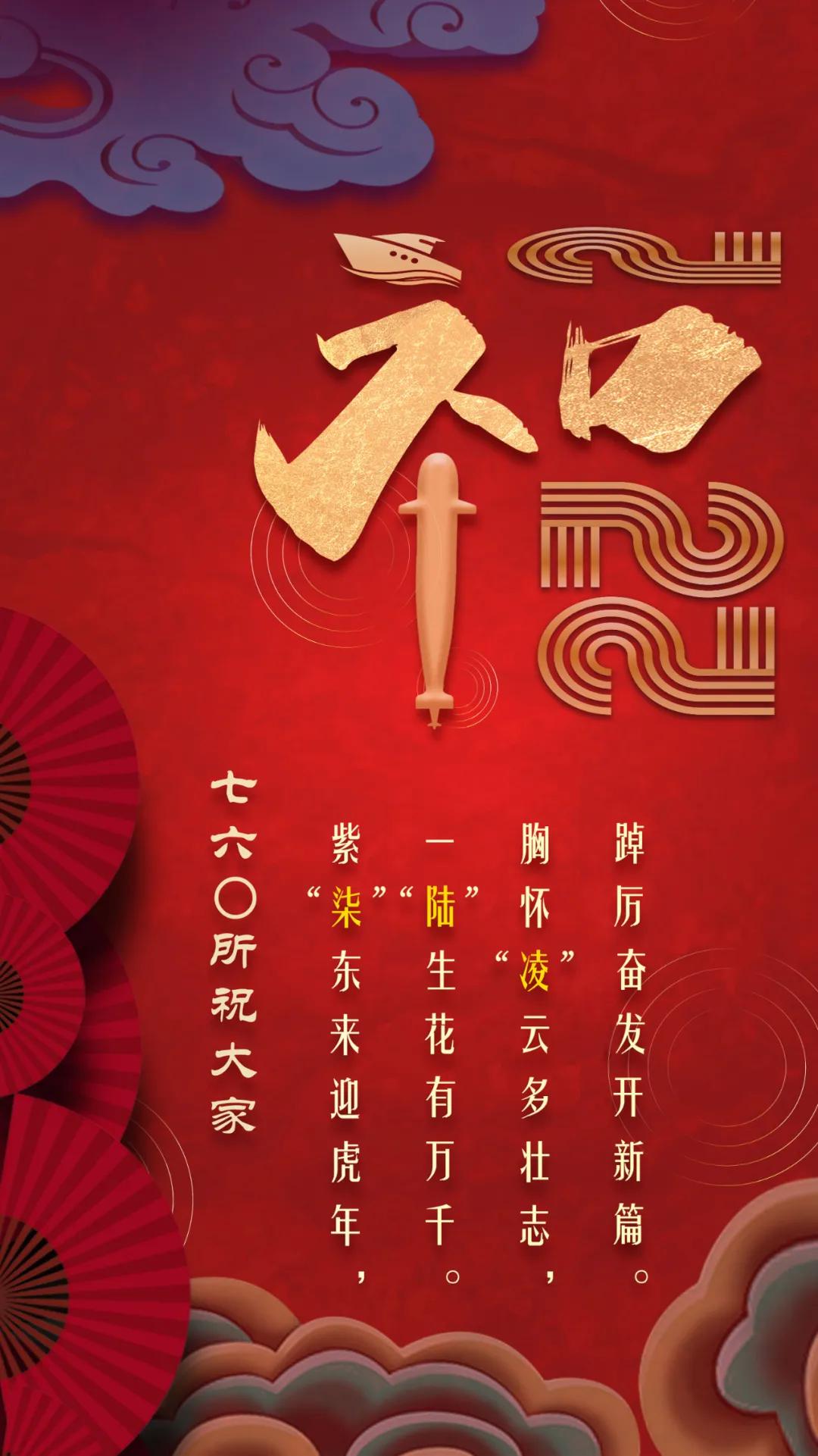 海報將船、潛艇、2022與“福”字巧妙地融為一體。“福”字中的船和潛艇,旨在致敬核潛艇精神、航母精神;“2”被設計成跑道形狀,代表著七六〇所要在2022年踔厲奮發、篤行不怠,為建設世界一流船舶集團貢獻更多力量!
