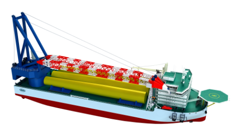 該船船長186米,寬48米,型深16米,滿載排水量約90000余噸。起重機采用單舷側布置設計,起吊高度可達主甲板以上145米,相當于50層摩天大廈。還配備有DP2級動力定位系統,可實現深遠??焖佟⒕_定位。能夠在海上風電場進行各項風電工程作業,主要包括10兆瓦及以下海上風機的基座、支撐塔架、機艙及葉片的吊裝和風機基礎等施工作業,以及其他海上吊裝或支持作業。