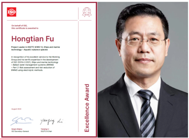 ISO卓越貢獻(xiàn)獎(jiǎng)旨在表彰在上一年度ISO國(guó)際標(biāo)準(zhǔn)制修訂工作中作出突出貢獻(xiàn)的專(zhuān)家、項(xiàng)目負(fù)責(zé)人或工作組召集人。此次頒獎(jiǎng)表彰了付洪田在ISO 23314-2:2021《船舶與海洋技術(shù)—壓載水管理系統(tǒng)—電解法壓載水管理系統(tǒng)的風(fēng)險(xiǎn)評(píng)估與風(fēng)險(xiǎn)降低》國(guó)際標(biāo)準(zhǔn)研制作出的貢獻(xiàn)。