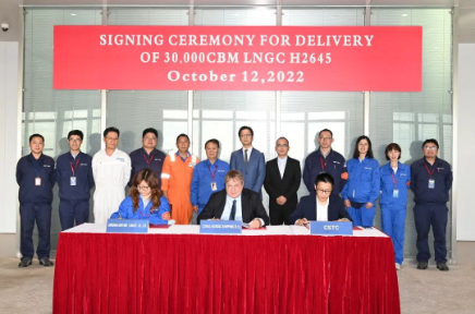 10月12日,中國船舶集團(tuán)旗下江南造船為荷蘭船東Anthony Veder公司設(shè)計(jì)、建造的30000立方米液化天然氣(LNG)運(yùn)輸船“Coral Nordic”號(hào)在上海簽字交付。