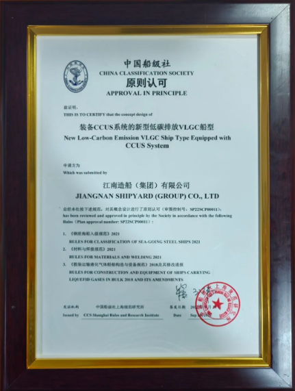 3月21日,中國船舶集團旗下江南造船聯合七一一所研發的全球首個配置碳捕捉和存儲系統(CCUS)的超大型液化石油氣運輸船(VLGC)船型方案獲得中國船級社原則性認可(AIP)。