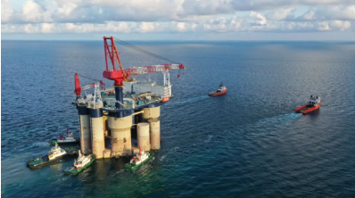 該平臺由下浮體、立柱和上甲板包組成,總長97.5米,寬度92米,高度118米,作業(yè)水深達52米,排水量17萬噸,依靠拖帶可在國內(nèi)無限航區(qū)內(nèi)航行、作業(yè)。