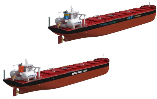新的一年,北海造船聯(lián)合中船貿(mào)易,與新加坡東太平洋航運(yùn)公司(EPS)簽署了4艘21萬(wàn)噸Ammonia DF/DF Ready散貨船建造合同,與日本商船三井簽署了3艘21萬(wàn)噸LNG雙燃料動(dòng)力散貨船建造合同。