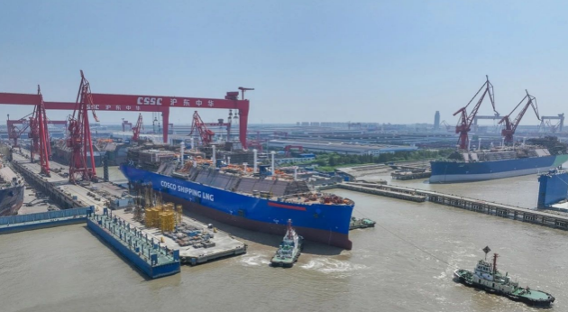 8月9日,中國(guó)船舶集團(tuán)旗下滬東中華3艘第五代LNG船生產(chǎn)節(jié)點(diǎn)告捷,實(shí)現(xiàn)2船出塢、1船開工三大生產(chǎn)節(jié)點(diǎn)。