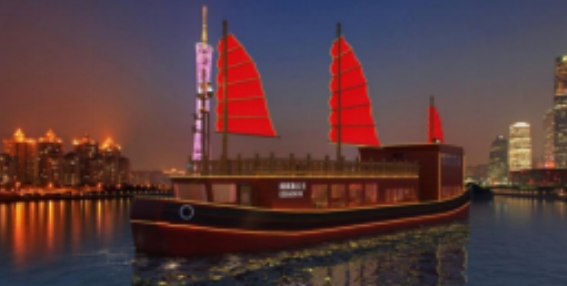 ????160客位純電動客船“闊闊真公主號”總長36米,型寬8米,型深3米。該船是仿七百多年前元朝闊闊真公主遠嫁波斯時乘坐的古船建造而成,有“福船送福”的寓意。建造后將行走于珠江,夜游展示亞洲文化交流的傳奇。
