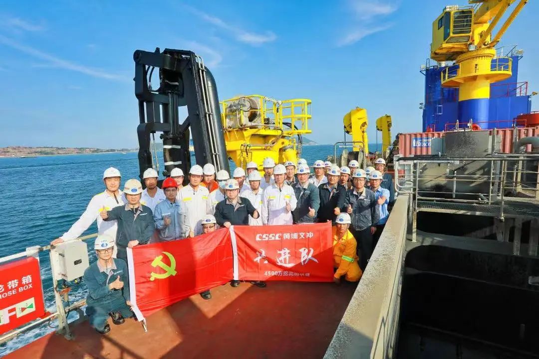 4500立方米智能耙吸挖泥船首制船自開工到完工四方確認(rèn),共歷時約16個月,可謂創(chuàng)下耙吸挖泥船建造周期最短紀(jì)錄。