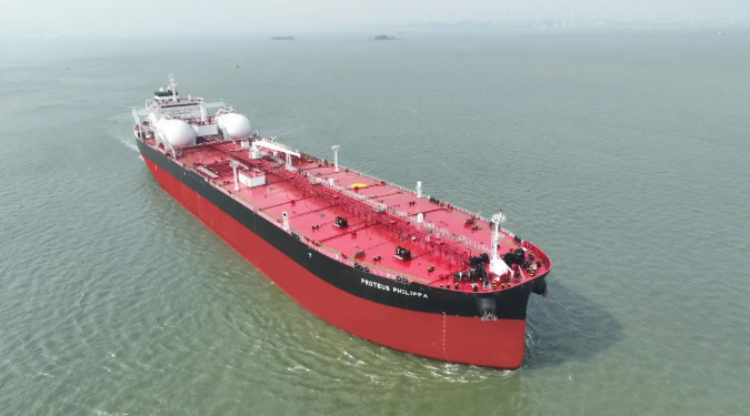 9月18日,中國船舶集團旗下廣船國際為交銀租賃建造的11萬噸LNG雙燃料原油/成品油船3號船交付啟航。