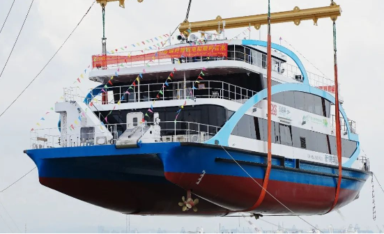 近日,中國香港新渡輪400客位純電池動力推進客渡船“新明珠39”號下水儀式在廣州南沙舉行。該船全船采用先進的碳纖維高新材料制造,是國內首艘整船采用國產碳纖維材料建造的客渡船,打破了高端碳纖維進口材料在國產客船的技術壟斷局面。