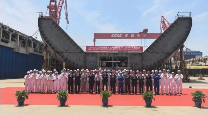 17.4萬立方米LNG運輸船“遠海奮進”號(Ocean Inspiration)在滬東中華新廠區(qū)正式命名。