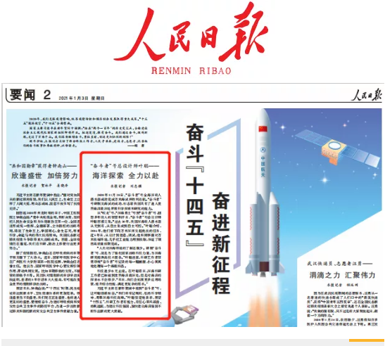 1月3日,人民日報在要聞二版【奮斗“十四五” 奮進新征程】專題報道中,以“海洋探索 全力以赴”為題刊發了對中國船舶集團七〇二所副所長“奮斗者”號總設計師葉聰的專訪。