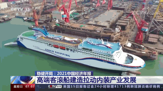 每一艘船舶都是一個(gè)系統(tǒng)工程,背后都連帶了巨大的工業(yè)制造體系。2021年,我國(guó)船企在高端客滾船建造領(lǐng)域取得優(yōu)異成績(jī),多艘船舶交付歐美船東,直接拉動(dòng)內(nèi)裝等產(chǎn)業(yè)的發(fā)展。