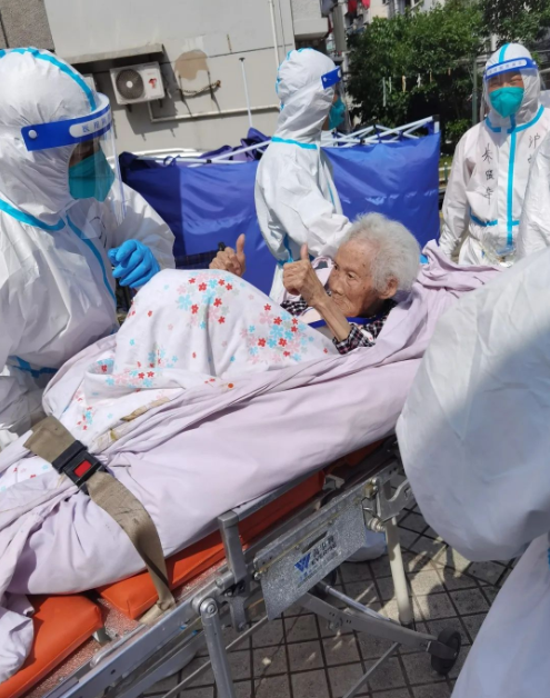 “我們是穿著防護服進去的,突然看到這么多‘大白’,老人們不免有些緊張,問的最多的就是‘去哪里’。隨著我們一趟趟幫著老人下樓、上車,老人們開始逐漸信任我們。因為轉運的部分老人中存在核酸異常的情況,有些老人還會時不時關照我們要注意防護。幫他們送上救護車時,老人還和我們連聲表示感謝?!碧镅┟髡f道。