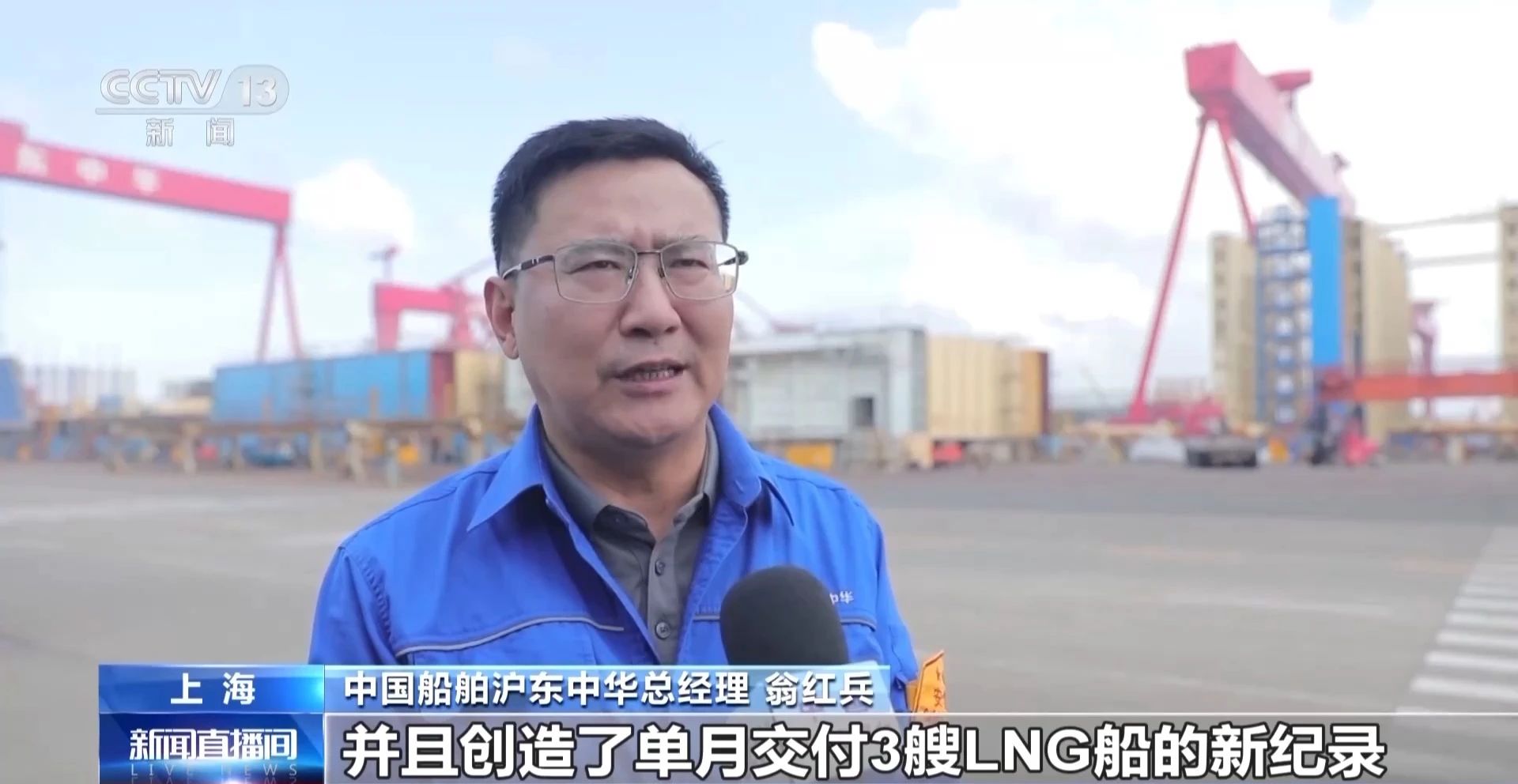 今年9月,在滬東中華造船廠,一個(gè)月就交付了3艘LNG船,創(chuàng)造了中國船舶建造史上單月交付的新紀(jì)錄。