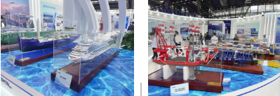 重點展示奮力摘取造船業最后一顆明珠的首制國產大型郵輪,以風、光、甲醇裝備等為主體的綠色船舶等高端海洋裝備、以“商業模式創新+創新技術應用”為引領的海洋文旅、深海養殖、海上風電等新興海洋經濟裝備、踐行“服務國家戰略”企業使命的與自然資源部和廣東省合作項目成果等,展現了中國船舶集團作為世界第一造船集團的總體實力、企業使命。
