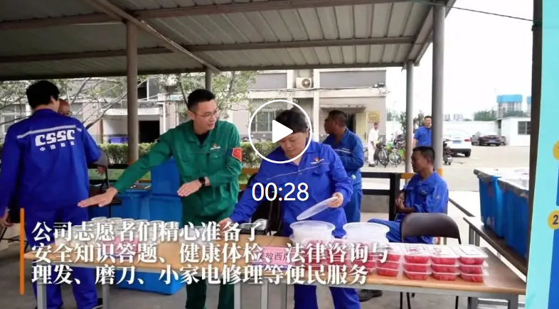 8月8日,中船澄西舉辦勞務(wù)工服務(wù)日系列活動,為勞務(wù)工送上冰鎮(zhèn)綠豆湯、西瓜及夏令清涼用品,精心準(zhǔn)備了理發(fā)、磨刀、小家電修理等便民服務(wù)以及健康體檢、法律咨詢。